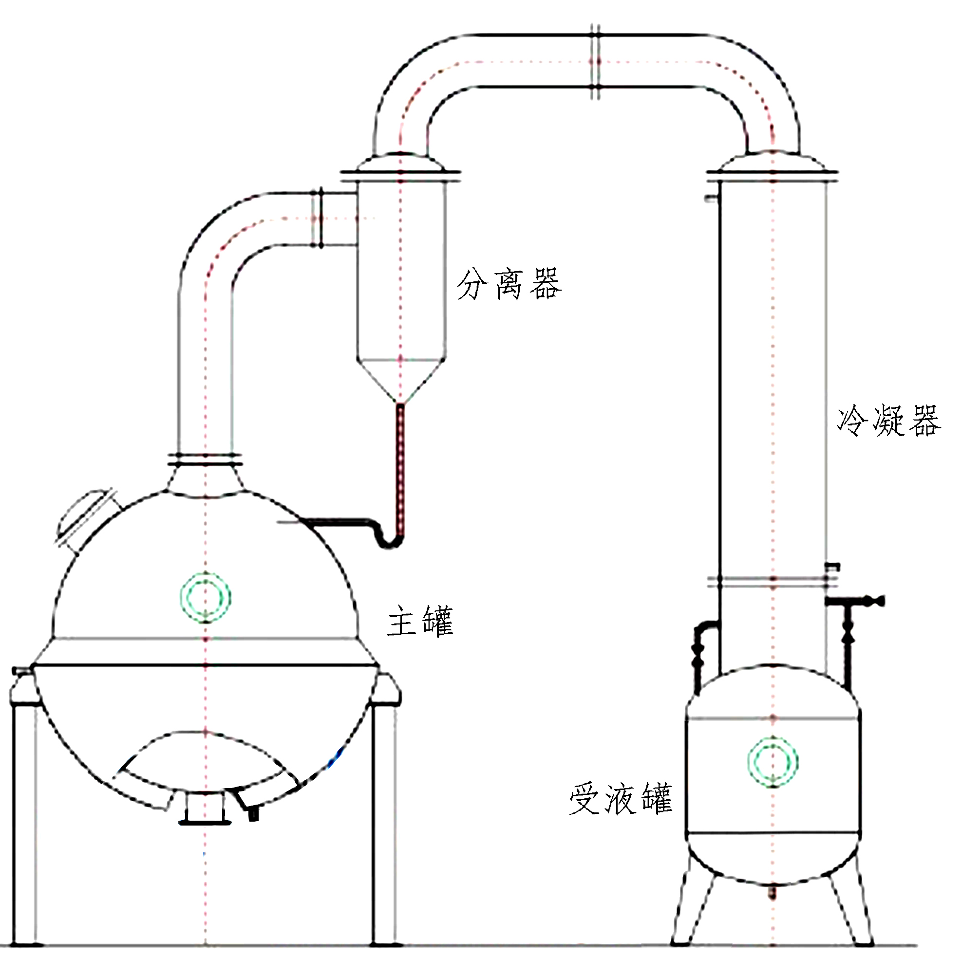 球形濃縮罐主要由濃縮罐主體、冷凝器、氣液分離器、受液桶四個部分組成,可用于制藥、食品、化工等行業(yè)對料液的濃縮、蒸溜及有機溶