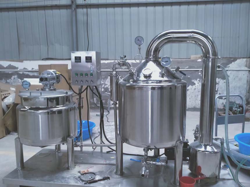 3 、預(yù)熱罐、濃縮罐的夾層內(nèi)加滿水,以防加熱器干燒;夾層出氣口嚴(yán)禁封閉;接好冷凝器的冷卻水管,冷卻水底進(jìn)高出。